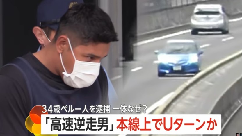 Rossi Cruz John Elias, a 34-year-old Pervuian National was arrested for driving in the wrong direction on an expressway in Kameyama City. He allegedly collided with two cars and fled the scene.