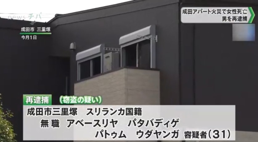 A Sri Lankan National, Abeysuriya Pathabadige Pathum Udayanga (31), living in Narita City, who was previously arrested on suspicion of arson, has been re-arrested for theft, stealing the cellphone of a woman he met through social media.